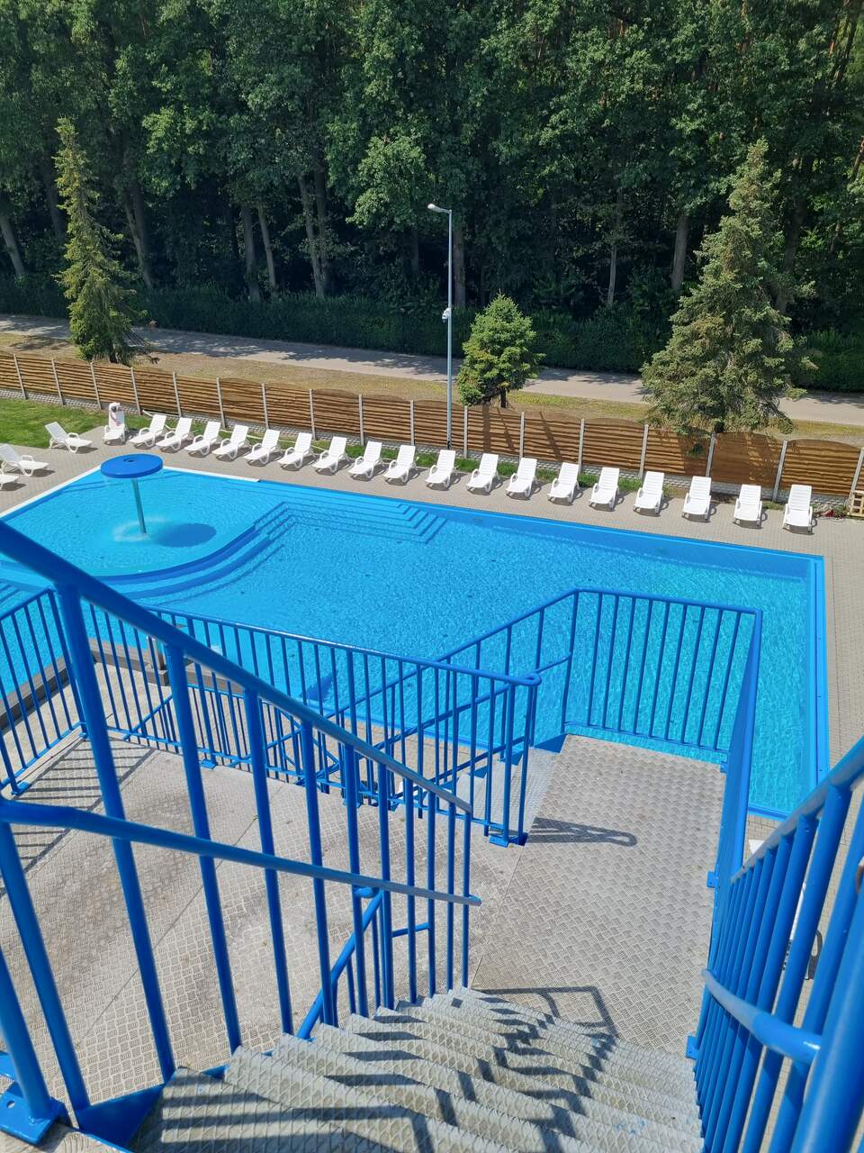 Woda w basenie jest regularnie filtrowana i kontrolowana, a cała strefa utrzymywana w nienagannej czystości.